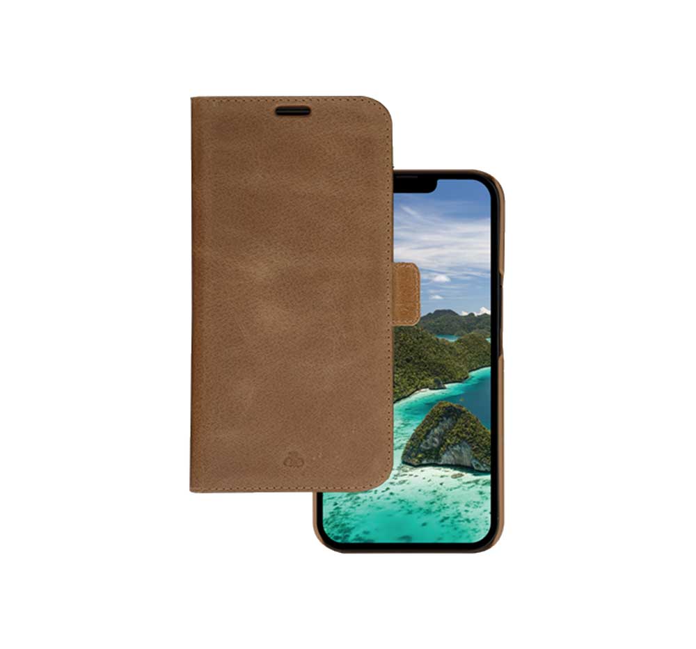 Με την κομψή και προστατευτική θήκη πορτοφολιού Copenhagen, θα έχετε πάντα μαζί σας το τηλέφωνο και το πορτοφόλι σας. Είναι χειροποίητο από ολόσωμο δέρμα βιώσιμης προέλευσης που αναπτύσσει μια όμορφη πατίνα με τη χρήση και διαθέτει αναδιπλούμενη πλάτη για οριζόντια παρακολούθηση βίντεο χωρίς χέρια. Προστατέψτε το τηλέφωνό σας και τον πλανήτη μας με αυτή τη λεπτή και πλούσια θήκη!
